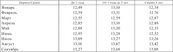 В 2014 г. на объеме кредитования малого и среднего бизнеса России негативно сказалась общая экономическая ситуация: снижение деловой активности субъектов хозяйствования, девальвация российского рубля, сокращение возможностей привлечения иностранного фондирования, рост ключевой ставки Банка России. В течение 2014 г. Банк России неоднократно повышал ключевую ставку. С 1 марта 2014 г. ставка была повышена с 5,5 до 7 %, с 25 апреля – до 7,5 %, с 25 июля – до 8 %, с 31 октября – до 9,5 %, с 11 декабря – до 10,5 %, с 16 декабря – до 17 %. Такой значимый рост ключевой ставки был обусловлен высокими девальвационными и инфляционными рисками. Рост стоимости фондирования при тенденции увеличения ставок по депозитам способствовал росту ставок на кредитном рынке (табл. 2.1). С учетом комиссий на рынке предлагали коммерческие кредиты по ставкам 13–18 %.