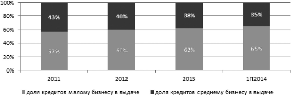Рис. 2.3. Доли кредитов малому и среднему бизнесу (оценка «Эксперта РА» по данным анкет банков)