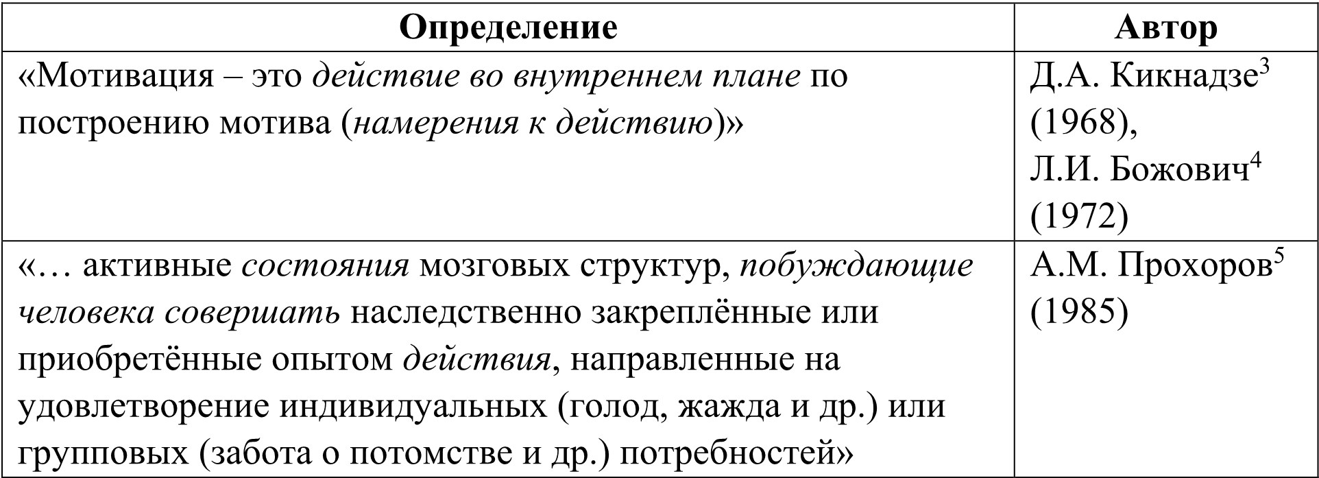 – мотив (А.В. Батаршев, А.Н. Пекарский, Н.Г. Морозова);