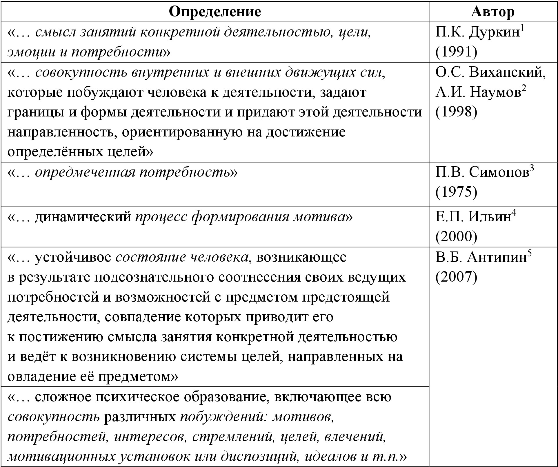 Все приведённые понятия («интерес», «мотив», «потребность») неразрывно связаны с таким понятием, как «мотивация». В табл. 1.6. приведена сводная таблица определений данного понятия.