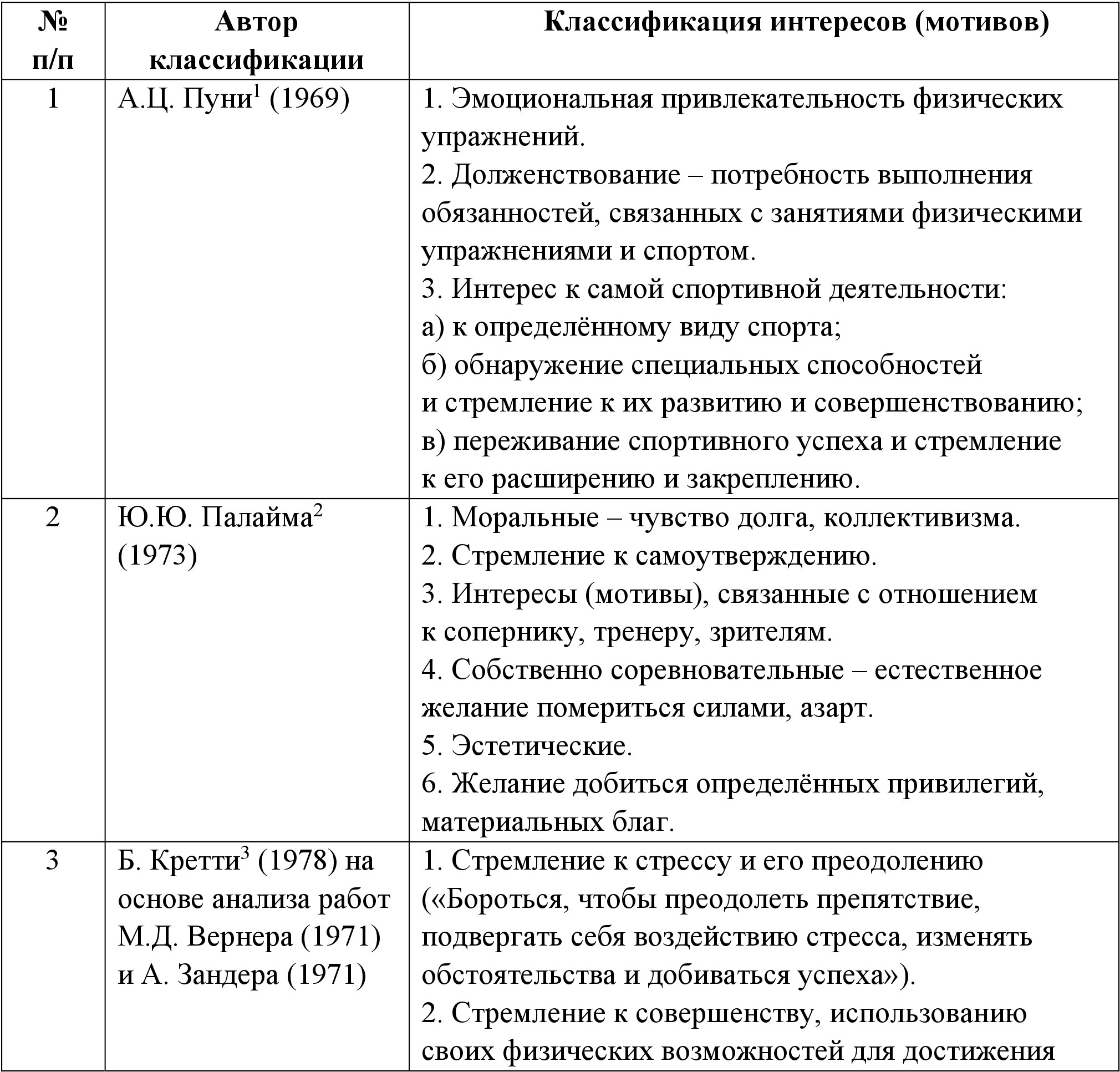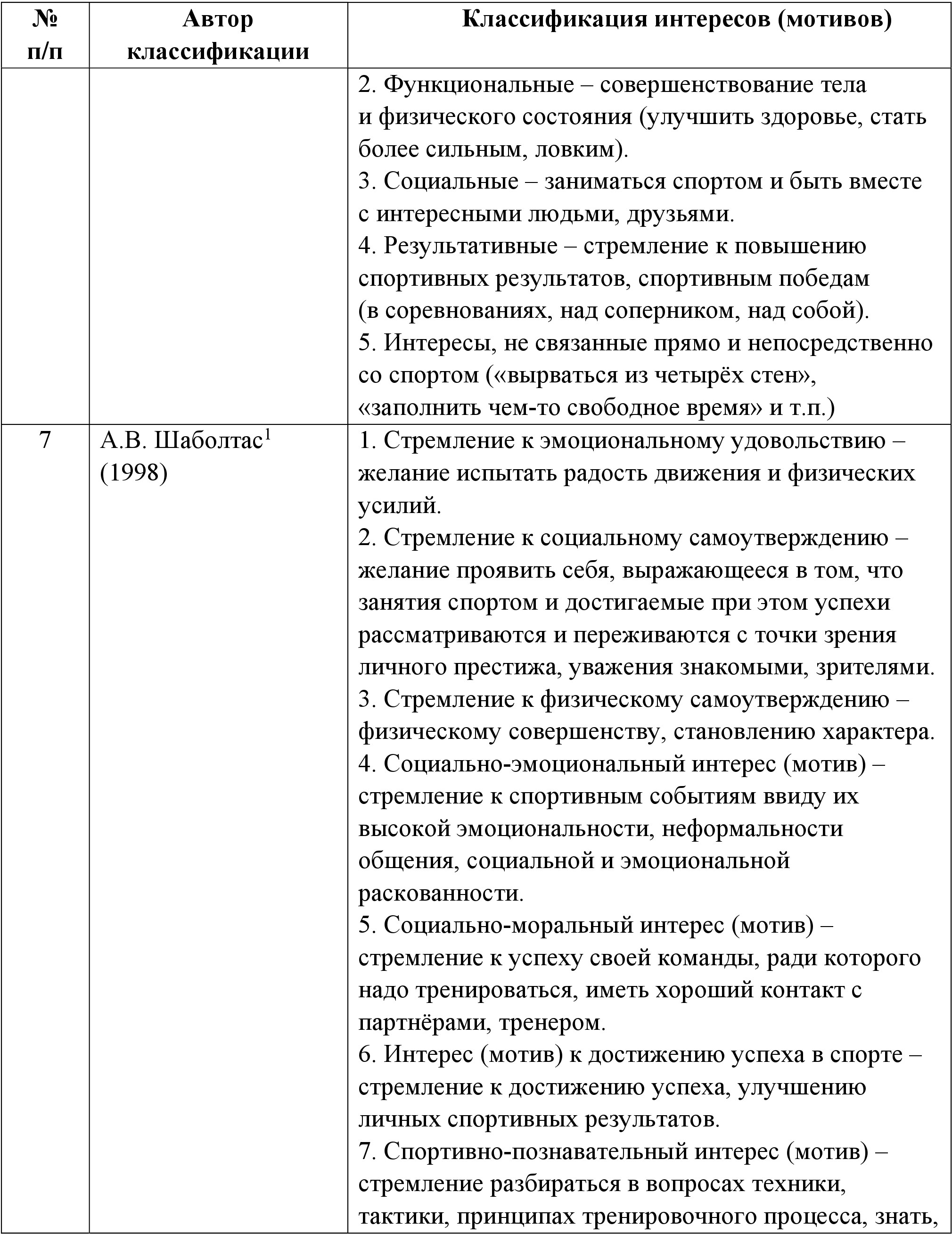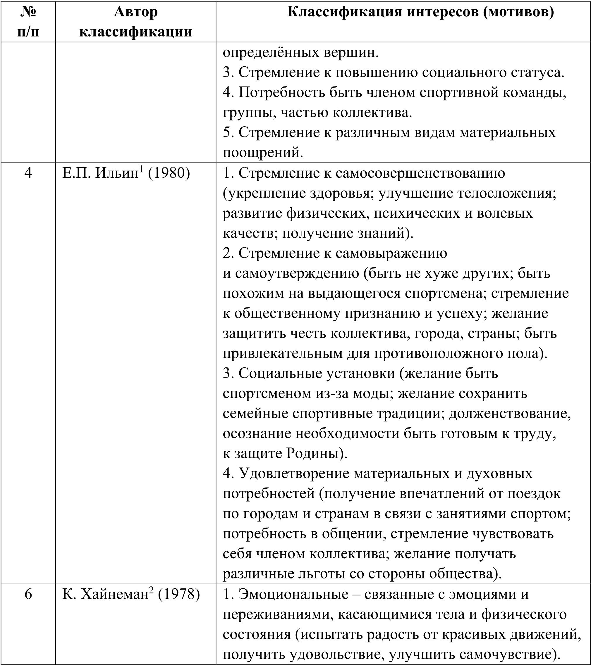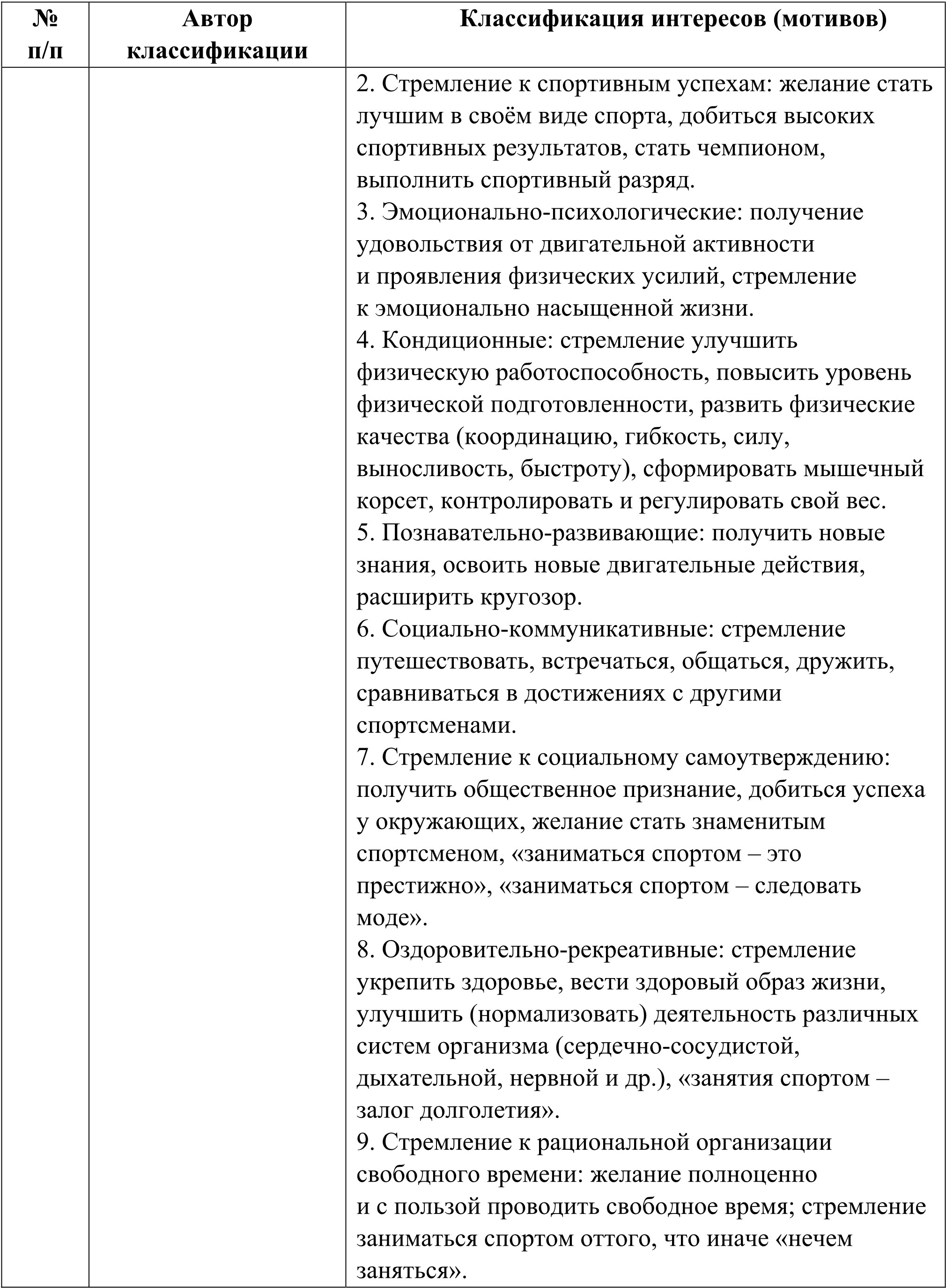 1.3. Анализ классификационных схем интересов, мотивов, потребностей в спортивной деятельности