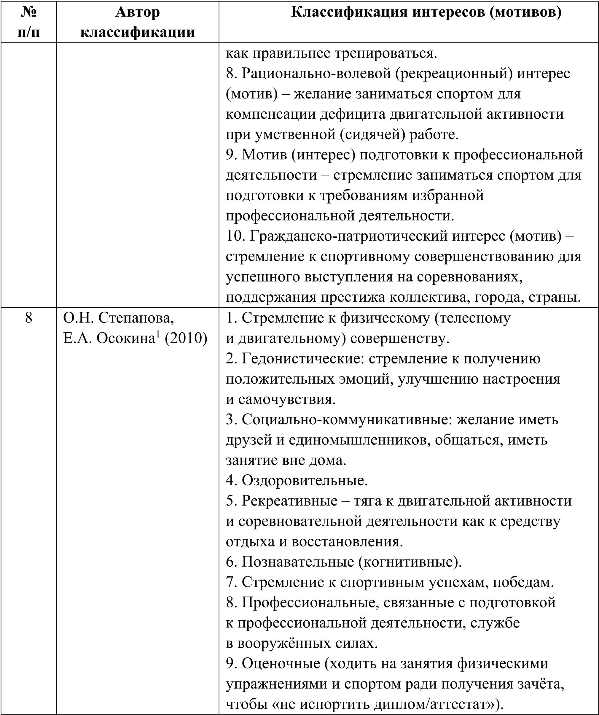 1 Степанова О.Н., Осокина Е.А. Физкультурно-спортивные интересы и потребности студентов вузов г. Москвы и Ивановской области: сборник научных трудов Российской академии естественных наук, международного фонда «Знамя Победы». Выпуск 6. М.; Смоленск: Смядынь, 2010. С. 168–173.