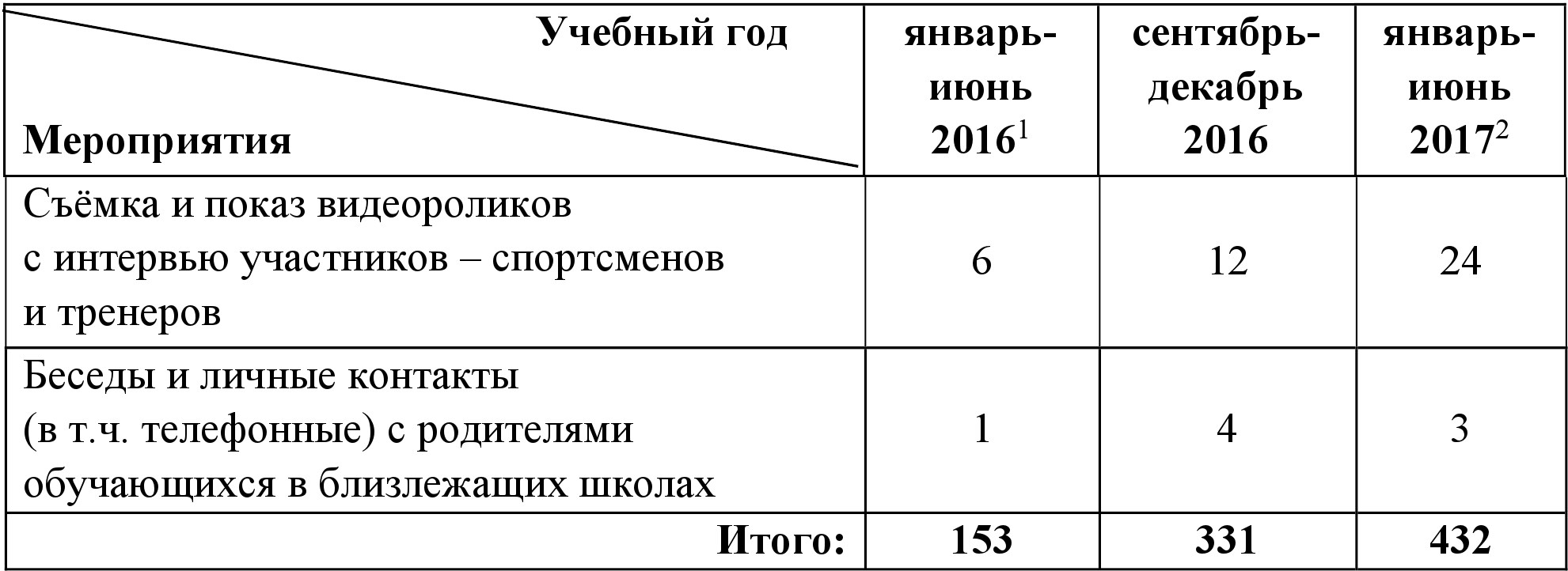 – наличие системы государственной пропаганды видов спорта (в первую очередь, «отстающих по популярности» олимпийских, возраст набора в которые соответствует подростковому) с использованием всего арсенала средств массовой информации и коммуникации и технологий работы с общественным мнением;