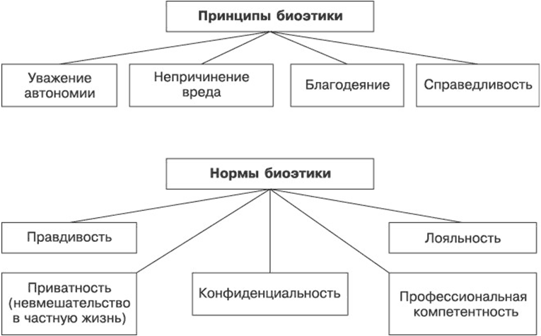 Высшая цель медицинской науки – дать людям знания. Высшая цель медицинской практики – опираясь на знания, добытые наукой, удовлетворить потребности человека и общества в сохранении и поддержании здоровья и самой жизни. Высшая цель биоэтики – разрешать противоречия между интересами личности и общества, возникающие в ходе прогресса науки и медицинской практики. Таким образом, этика является мерой и критерием разрешения конфликта интересов, возникающих в процессе прогресса науки.