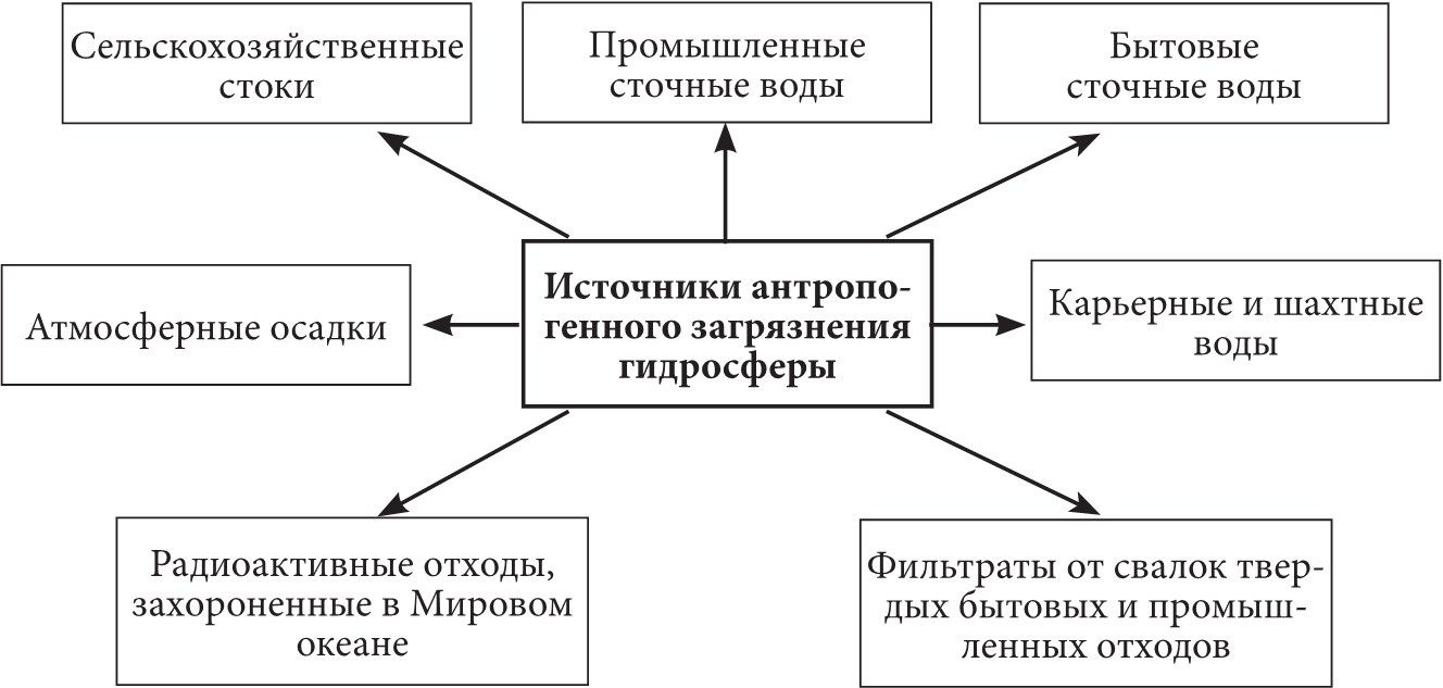 Основные источники антропогенного загрязнения гидросферы в целом представлены на следующей схеме (рис. 1).
