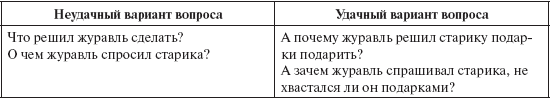 • задаются открытые вопросы обо всех ключевых событиях сказки;
