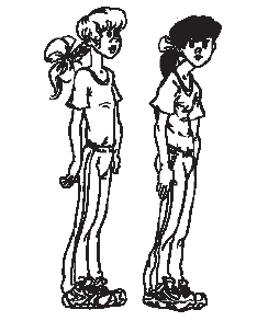 Выпрямить спину – это еще не все. Надо следить постоянно, чтобы мышцы не расслаблялись и спина не сгибалась. Когда ты садишься на стул, спина должна быть прямой, ноги держи вместе, ни в коем случае не скрещивай их. Сидеть надо удобно, посередине стула, а не на краю. Вставая со стула, постарайся как бы коснуться головой потолка, а плечи держи на одном уровне. Когда ты поднимаешься или спускаешься по лестнице, не сутулься, а то со стороны может показаться, что ты непременно хочешь упереться носом в следующую ступеньку.
