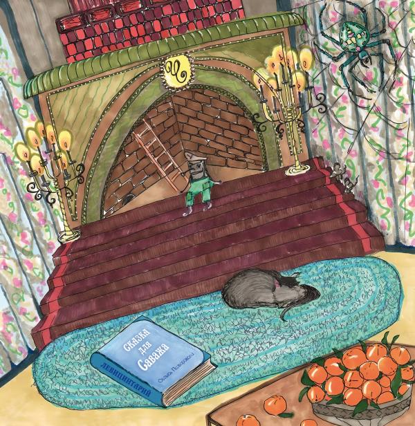 В камине, где то в глубине, в темной старой трубе что-то шуршало, потрескивало и временами постукивало. «И нечего боятся!» – уговаривал себя храбрый Савелий, – «Там же живут волшебные жители сказочной страны Чердакрышии и добрый волшебник Генносиум! Так говорит бабушка, а она уже старая и мудрая и всегда говорит по честному», – успокоил себя малыш и заснул.