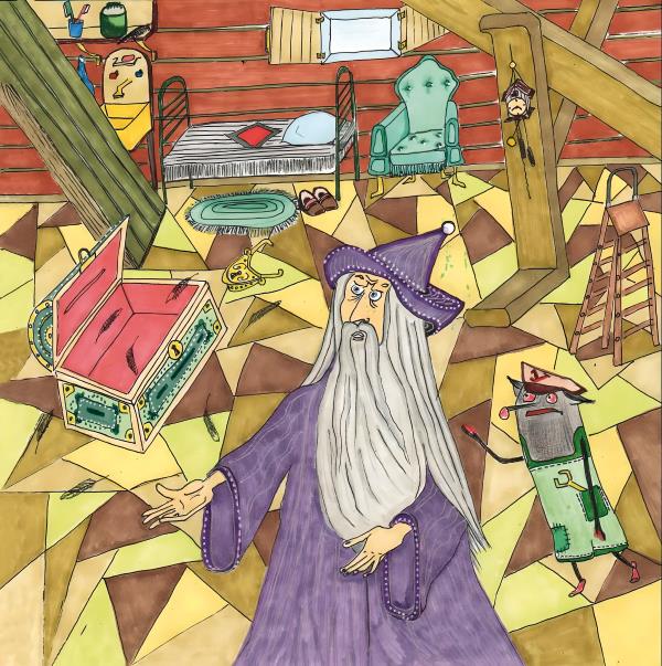 – Вот старый болван! – обругал себя волшебник, – куда же я мог их положить вчера? Ой, я же кажется, сложил все в старый сундук? Ну конечно, вот простофиля! – и хлопнув себя ладонью по лбу, старик достал из кармана мантии серебряный ключ от сундука.