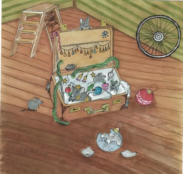 Мышата опять вцепились друг в друга и стали шумно возиться среди елочных стеклянных игрушек.
