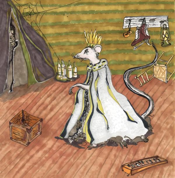 Клариссия была крупной желтозубой крысой, с узкими крючковатыми лапами и длинными черными, острыми когтями. Она носила дорогую голубую шубу, а на голове сияла украшенная драгоценными камнями золотая корона. Из под длинного шлейфа шубы тащился жирный, волосатый хвост. В этом хвосте и заключалась самая главная сила королевы. Клариссия его очень берегла, холила и лелеяла. Без хвоста королева могла потерять не только волшебную силу и власть, но и свою жизнь.
