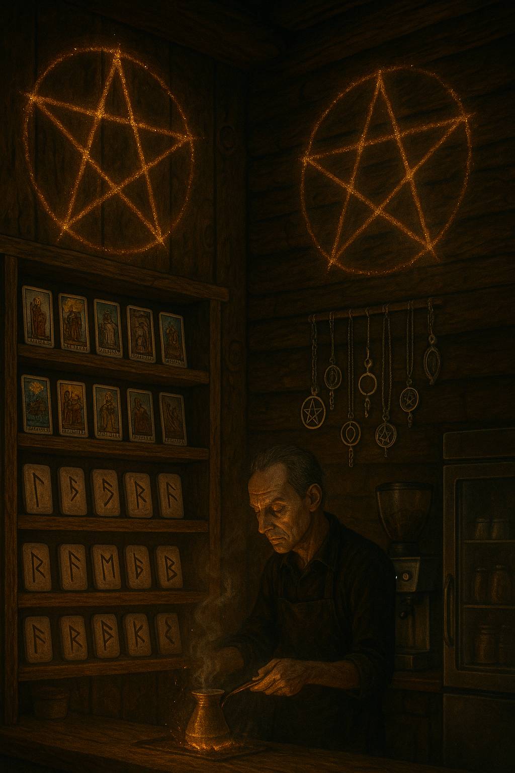 Я вглядывался в стены, дышащие стариной, словно кофейня находилась не в доме, построенном менее ста лет назад, а в срубленном старинном тереме, и пентаграммы проступали под моим внимательным взглядом и загорались золотистыми искорками. А едва я отводил глаза в сторону, как стены снова становились тусклыми.