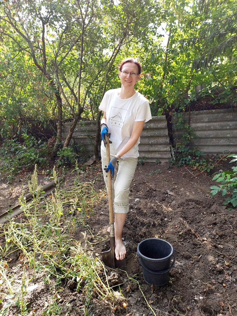 Дом её выдержал обстрелы, стоит, но нужен ремонт, внутри ещё есть следы гари, есть трещины. В огороде пока растёт только немного овощей. И то – в этом году случился неурожай. В июне весь месяц было сухо, +50, картошка, помидоры засохли. Мы с Серёжей, конечно, картошку выкопали, но она по размеру больше похожа на слезы… Помидоры ничего не дали, кабачки совсем маленькие. Правда, виноград бушует, он один и уродился.