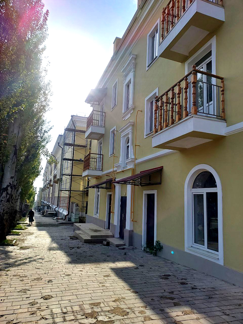 Почти все дома на улице отреставрированы, заменены окна, крыши. Если смотреть в перспективу, то череда новеньких домиков создаёт ощущение, что я попала в город-сказку. Да, но это только фасады. За счёт государственных средств идёт наружный ремонт и восстанавливают подъезды, квартиры должны ремонтировать сами жильцы, хотя, насколько я знаю, уже разработаны программы софинансирования.