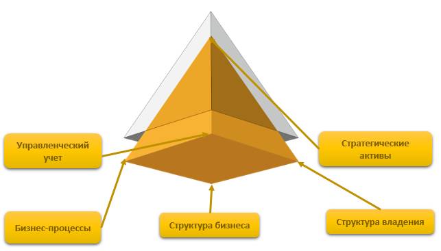 Именно верхняя, прозрачная пирамида мной задумана как олицетворение владельческого контроля. Она прозрачна, чтобы владелец мог: