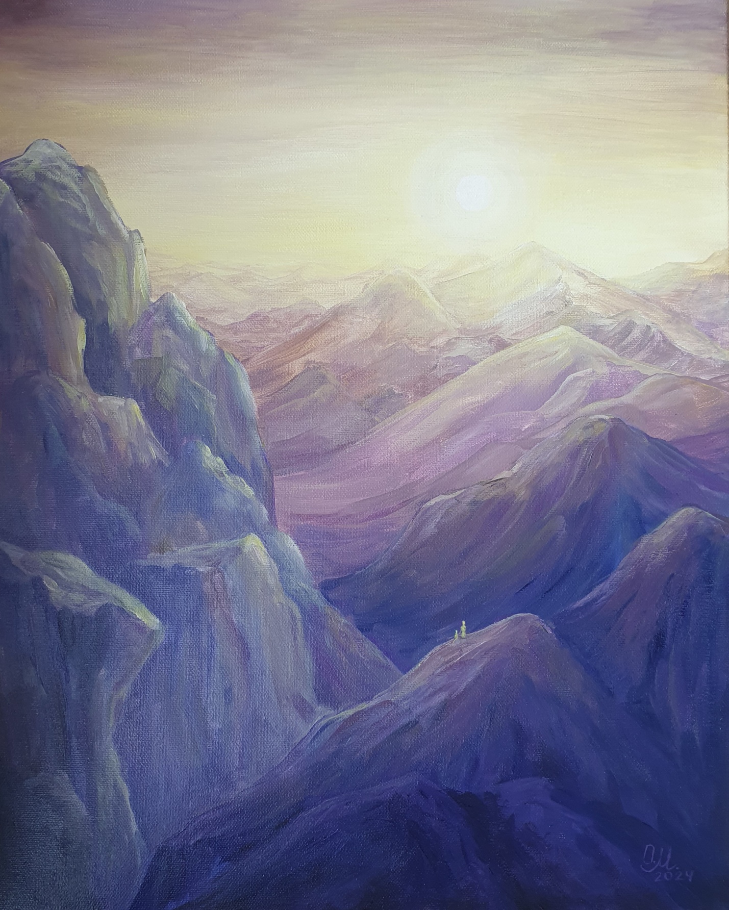 – Это то самое место, куда я так стремилась! Это вершина горы, отсюда мы будем наблюдать восход солнца! Иди ко мне! – Женщина села на большой камень, Кошка разместилась у неё на коленях, и их взгляды устремились на восток.