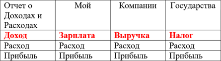 Если посмотреть на отчет о доходах и расходах отдельного человека, компании и государства, то мы получим следующую картину: