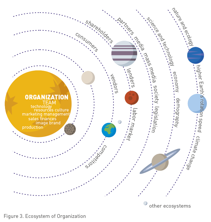 A company is a living organism, an ecosystem, where each element (employees, partners, customers, contractors, society, state) exerts an influence on the direction and performance of the system as a whole (see Figure 3).