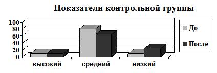 Проанализировав данные сравнительных диаграмм можно проследить изменения, до и после проведенных игровых занятий, в среднем и высоком уровне развития кратковременной смысловой памяти испытуемых экспериментальной и контрольной групп.