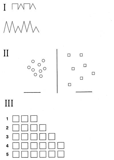 Цель. Оценка сформированности навыков пересчета в пределах 9, соотнесение цифры (графемы) и количества изображенных фигур. Оценка моторных навыков при изображении цифр. Определение сформированности понятия «больше—меньше» в ситуации «конфликтного» расположения элементов.