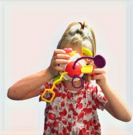 “Ay-yay-yay, Polya, one should not play with potty.” I take the ball from toy potty. “It’s for wee. Let me help you. One should take pants off (I help her with an extra), sit on it straight (with quite an effort I bend Polya’s legs and sit her on the potty with all her backside, because she likes to sit on the very edge, I know it for sure) and wee…” Water streams from baby doll.