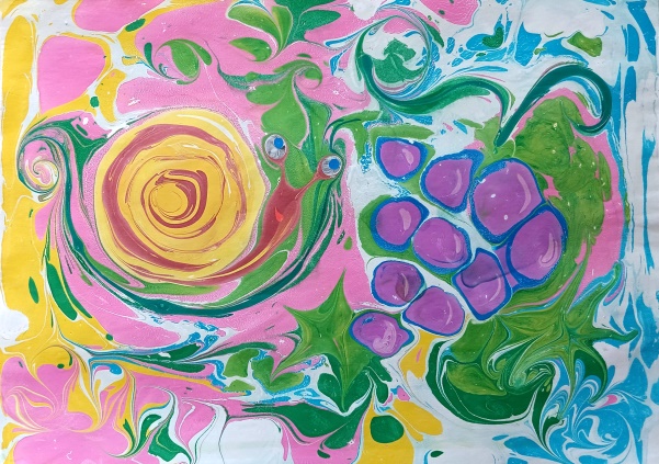 Лола собирает виноградных улиток в жёлтенькое ведёрко, чтобы построить улиточную ферму (она видела такое в отпуске – это было необыкновенно). Витька рядом, но под забором, копает червей (ковыряет землю палкой и достаёт тех, что потолще; конечно, иногда они упираются и с каким-то «пуп» рвутся на две части, но таких он отпускает, и половинки, танцуя, ныряют обратно в землю). Лола как раз тянется на носочках за особенно красивой улиточкой, как вдруг что-то тычет её в макушку! Тычок выходит не больным и глухеньким, но неожиданным. Лола бахается прям на брата с его червями (достаётся и тем, кого он отпустил, ведь «уйти» далеко они не успели), улитки дождём сыплются сверху, а та самая улитка выпучивает глаза и так вытягивает рога поглядеть, что чуть не пикирует со своего листа.