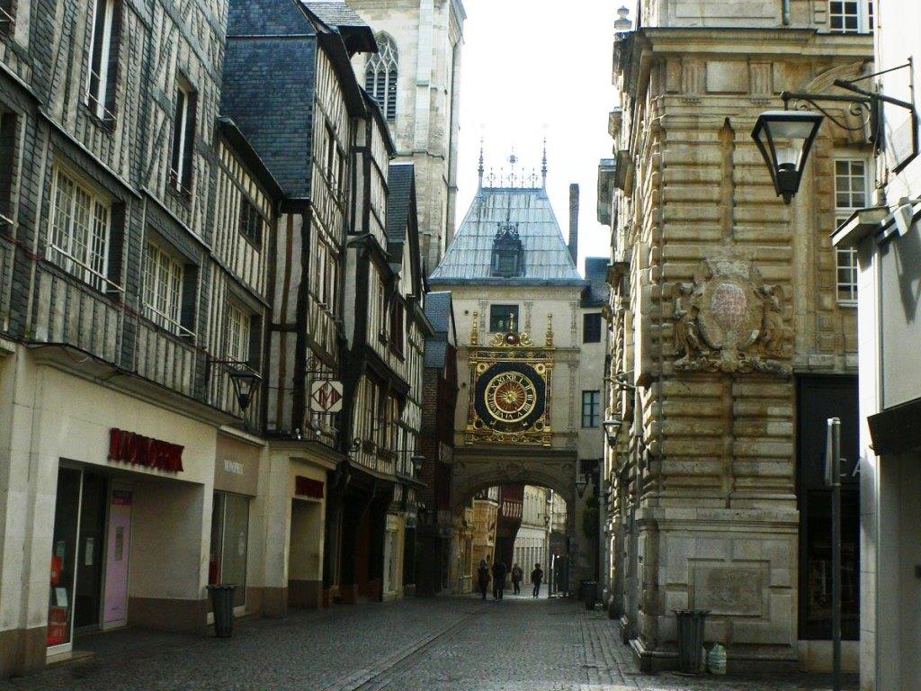 Пешеходная улица Больших Часов (rue du Gros-Horloge) – главная артерия Старого Руана (Vieux Rouen). Старый город, практически разрушенный во время войны, тщательно восстановлен. Его узкие улицы (часть из них пешеходные) застроены фахверковыми домами, которых сохранилось более 800 штук. До 1520 года верхние этажи строили с эркерами или выступами, чтобы увеличить внутренне пространство.