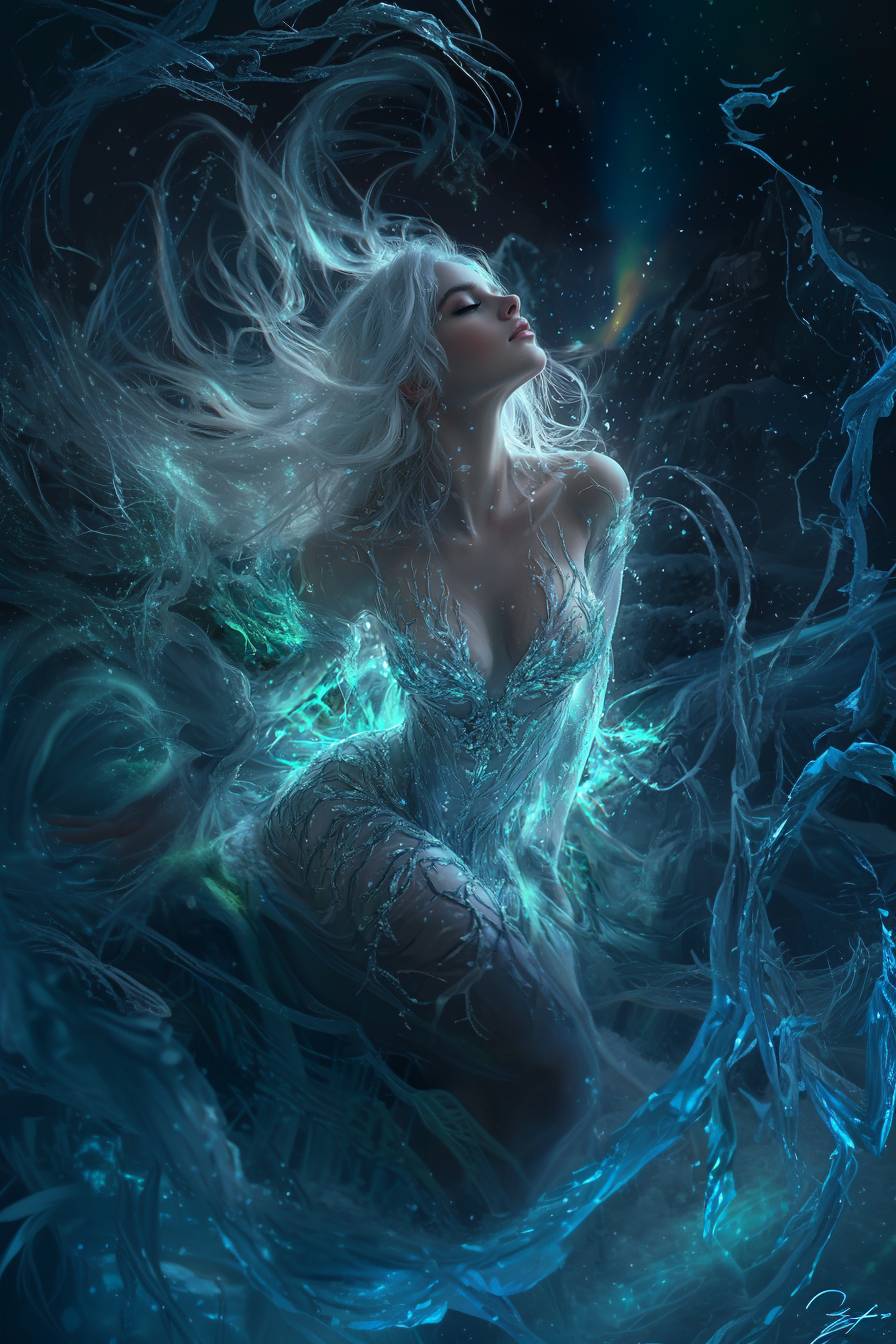 Пока Тараниас размышлял о непредсказуемости местных эльфиек, Таэллин становилась всё ближе к берегу. Однако с каждым её шагом, гримаса семаргла приобретала ещё большее удивление. А когда она полностью выбралась из воды, в глазах проявилось некое разочарование. Девушка стояла на берегу в переливающемся платье из воды и пены.
