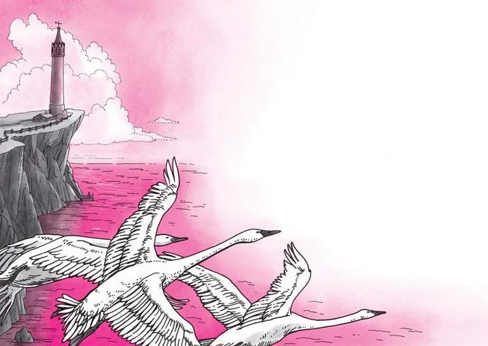 Старик мог бы вернуться в хижину, к своему очагу. Но вместо этого он поднимается на верхнюю площадку башни. Ставит фонарь возле открытой двери. Затем из тёмного угла достаёт длинную трубу и с трудом переносит её на площадку. Прилаживает трубу в жёлоб, сделанный в верхней части стены, и смотрит далеко на северо-запад, через моря и земли.
