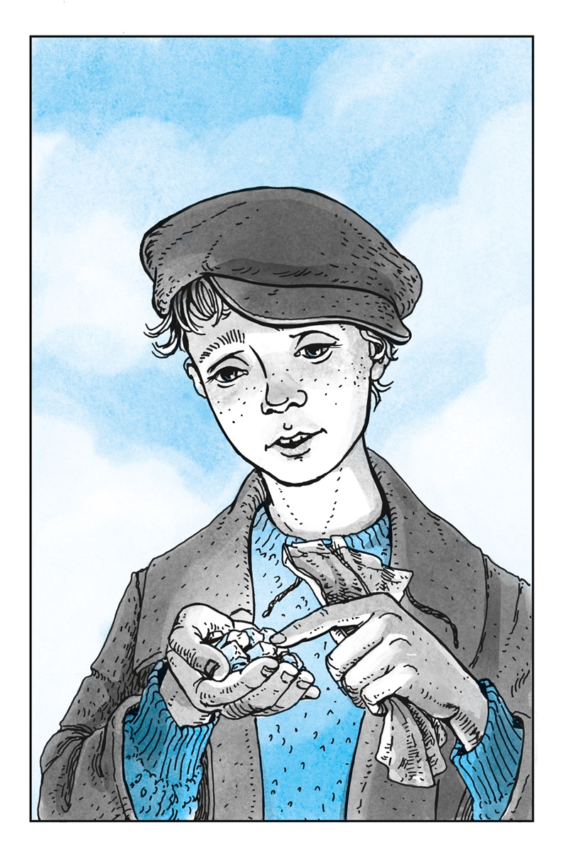 Петюнины штаны были мокрыми до колена, не говоря уже о башмаках, в которых хлюпала вода. Пальто – с хлястиком чуть ли не на лопатках, само короткое, а рукава ещё короче – всё было в бурых пятнах. Но при этом Петюня сиял и радовался, как младенец.