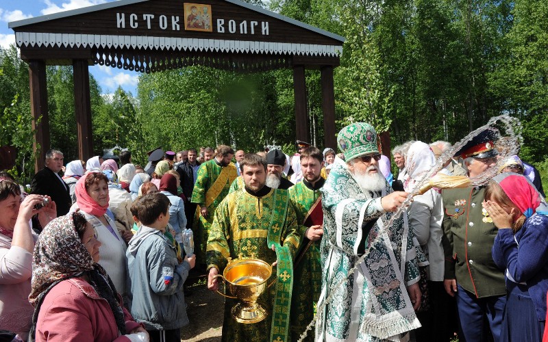 1) Исток реки Волги расположен на Валдайской возвышенности, в Осташковском районе Тверской области, у юго-западной околицы деревни Волговерховье. Из водоёма Волга вытекает ручьём шириной до 100 см и глубиной до 30 см. В трёхстах метрах от истока находится Ольгинский женский монастырь с его главным храмом – краснокирпичным Спасо-Преображенским собором и небольшой деревянной церковью Николая Чудотворца. Перед собором установлен памятник святителю Николаю – Чудотворцу Мирликийскому. После первых 3,2 км течения Волга впадает в проточное озеро Малые Верхиты, потом в озеро Большие Верхиты, а затем впадает в крупное озеро Стерж, далее – в озёра Вселуг, Пено, Волго, которые являются частью системы Верхневолжского водохранилища.