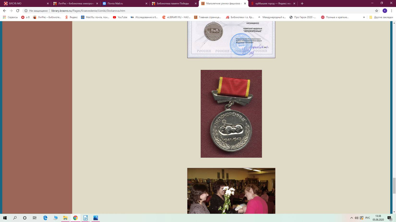 В 1998 году я провела большую работу по созданию городской организации малолетних узников фашистских концлагерей, целью деятельности которой стало оказание помощи (в том числе информационной) бывшим узникам.