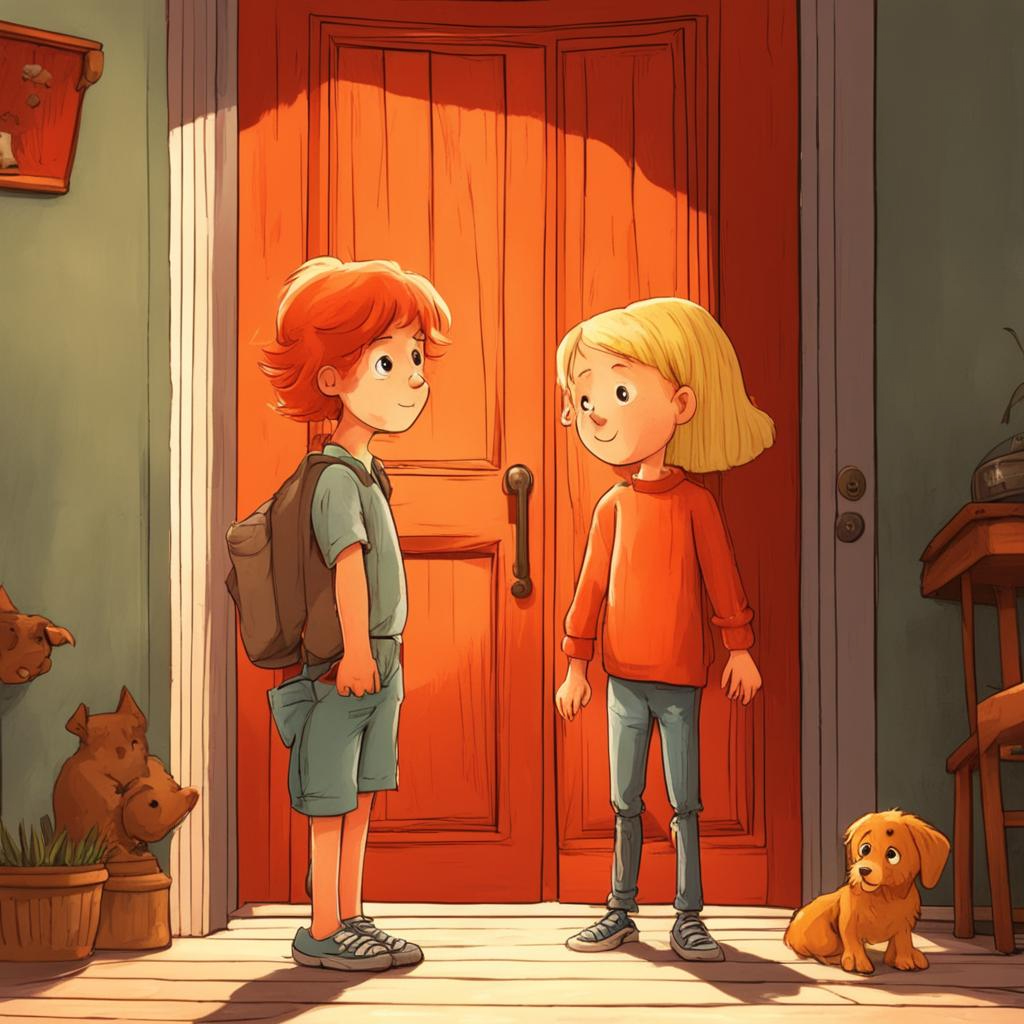 Алиса постучала в дверь, и их встретила доброжелательная женщина. "Привет, мы Артем и Алиса. У нас есть несколько вопросов о вашей собаке. Можем ли мы поговорить с вами?"