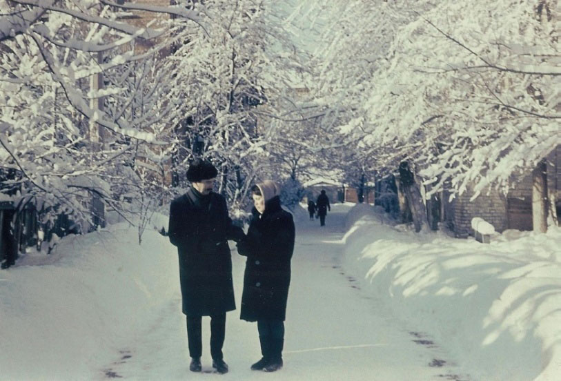 Папа и Нина в проходе от Печерского спуска на Резницкую. Киев, февраль 1964 г.