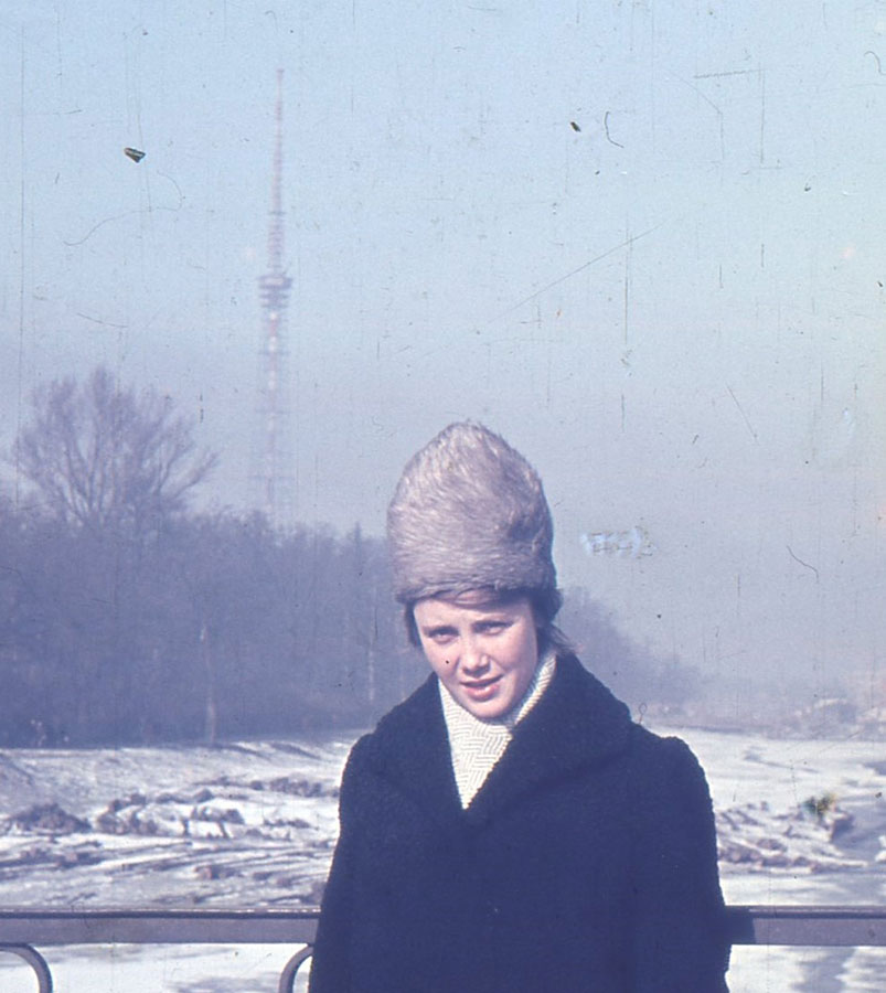 Нина на Гренадерском мосту на фоне Ленинградской телебашни