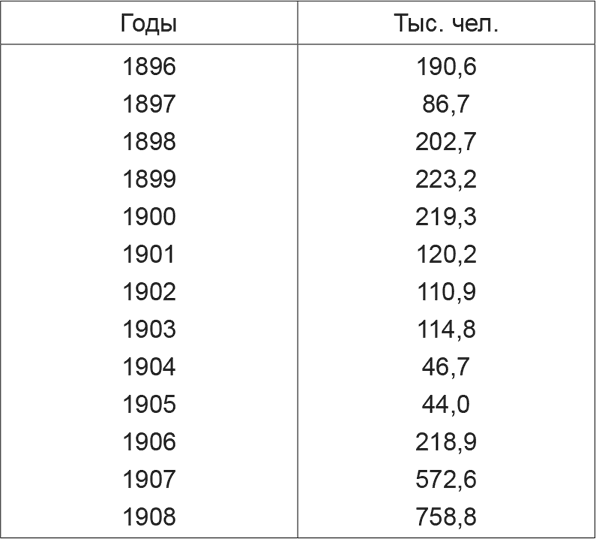Еще одной характерной чертой России того времени являлся крайне низкий уровень эмиграции русского населения в другие страны. Покинуть ее в то время можно было свободно, но русские люди не пользовались такой возможностью, ибо для многих из них мысль расстаться с Родиной была дикой. Основной поток эмигрантов из России составляли лица нерусских национальностей (евреи – около половины уехавших, поляки – около четверти, литовцы и т. п.). Доля русских, уехавших на чужбину, была просто ничтожной (в 1909 году – 0,06 %) в общей численности населения страны, тогда как из Швеции и Норвегии эмигрировал каждый пятый житель, из Великобритании и Италии – каждый десятый, из Германии – каждый пятнадцатый[8].