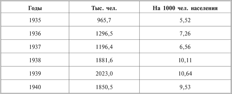 Удельный вес осужденных за «контрреволюционные преступления» в составе лагерных заключенных ГУЛАГа составлял в 1934 году 26,5 %; в 1935 – 16,3 %; в 1936 – 12,6 %; в 1937 – 12,8 %; в 1938 – 18,6 %; в 1939 – 34,5 % и в 1940 – 33,1 %.