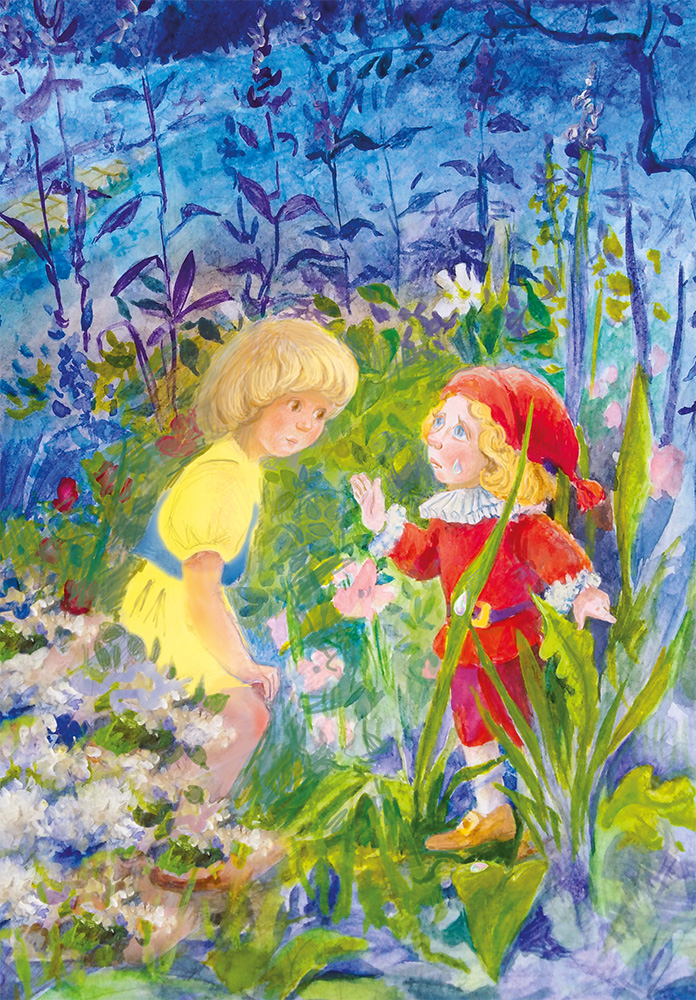 Твой дом стоит на самом краю леса, и я сразу же попал к тебе в сад. Птички сказали мне, что ты добрая девочка, и я решил обратиться к тебе. Помоги мне найти смелого человека, который спасёт принцессу Смешинку.