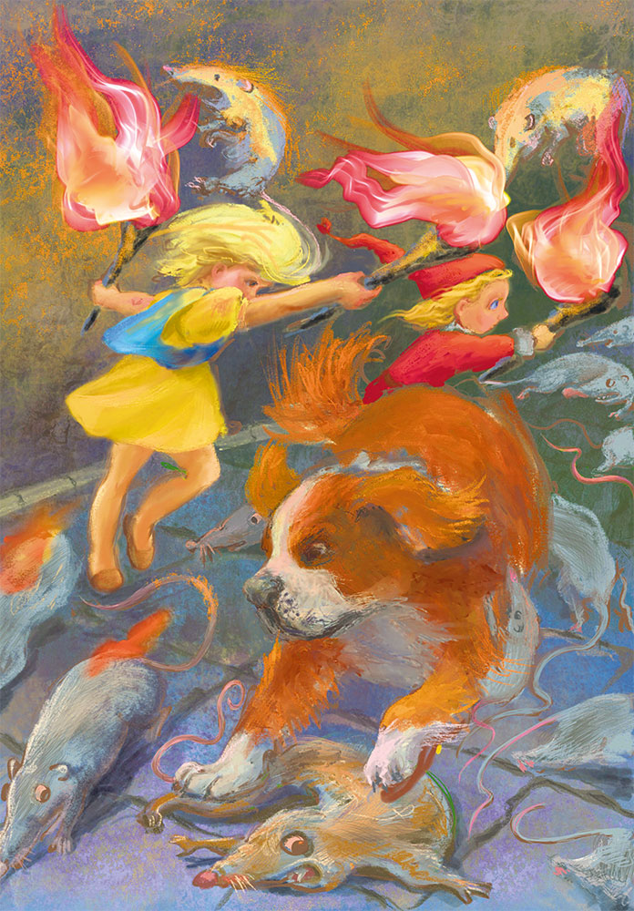– Вперёд, храбрый крысиный народ! Я чую запах ужина, раздерём их на клочки! Из шкуры пса сделаем подстилки в своих пещерах.