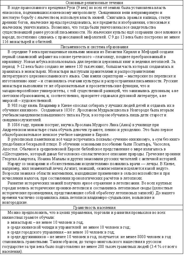 Период 10-13 веков (первое объединение княжеств – Киевская Русь, принятие общей религии);