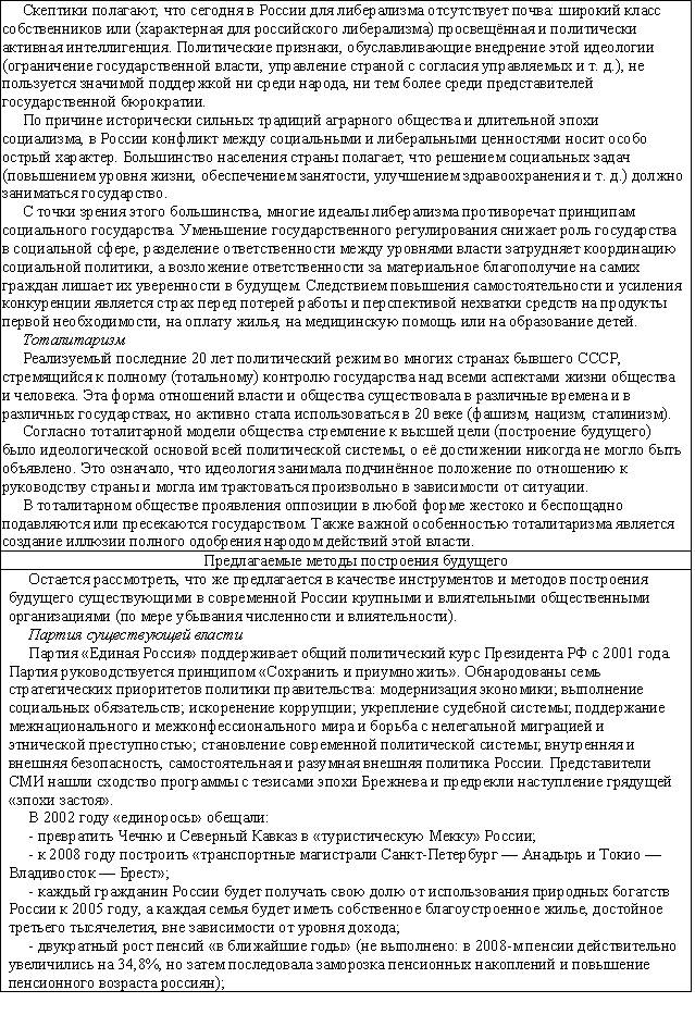 Отсутствие новых идей в социологии и политологии только подтверждает, что современное состояние общества находится в состоянии неустойчивости, нестабильности и легко может как обрушиться назад, к тоталитарному режиму, так и подняться к новому состоянию – общественного самоуправления, когда все члены общества принимают участие в решении проблем общества, планировании будущего и его построения. Но об этом будет рассказано в третьей части.