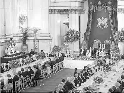 Остальные дипломатические сотрудники помогают прибывающим гостям знакомиться с присутствующими, найти свое место в плане рассадки. По сигналу ответственного за мероприятие они сопровождают гостей в другое помещение, где накрыт стол (столы).