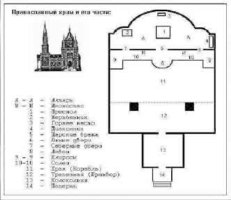 Каждый храм посвящается Богу, а его название всегда хранит память о том или ином важнейшем историческом событии или о ком-то знаменитом, причисленном к лику святых. Все церковное здание делится на притвор, собственно храм, и алтарь (с восточной стороны), и если в храме несколько алтарей, то каждый из них освящается в память особого праздника или святого. В этом случае все алтари, кроме главного, называются приделами.