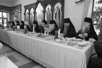 Если светских гостей много, то главный стол делится пополам. На одной половине рассаживается духовенство, на другой – гости. Если участников трапезы немного, то духовные лица рассаживаются вперемежку с приглашенными чиновниками.