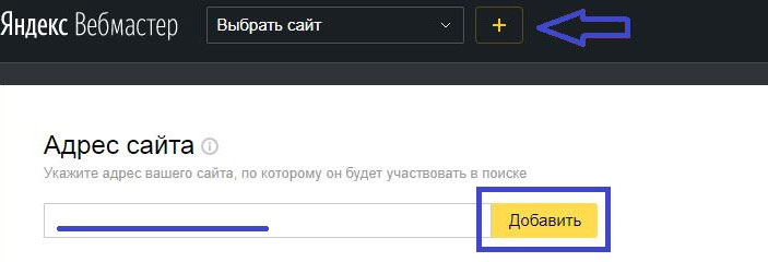 Рис. 1. Добавление сайта в «Яндекс. Вебмастер»