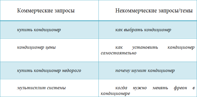 Таблица 1. Примеры коммерческих и некоммерческих запросов