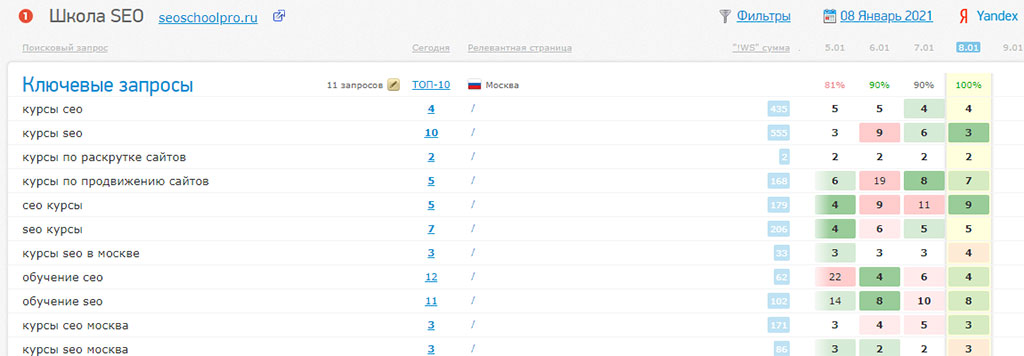 Аналогичная ситуация и с сайтом школы. Но его я продвигал дольше и усерднее. Ресурс в топ-10 «Яндекса» с 2014 года. На дворе уже 2021-й.