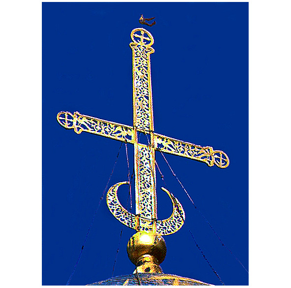 Все мы знаем из глубокой истории, когда Иисус шел на Голгофу, он нес свой четырехконечный крест. На котором он и был распят. Непосредственно перед казнью, на Крест были прибиты еще два элемента. Это надпись над головой и упор под ноги Сына Божьего.