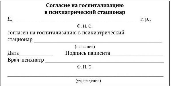 Естественно, если госпитализация недобровольна, письменное согласие пациента на те или иные виды лечения не обязательно.