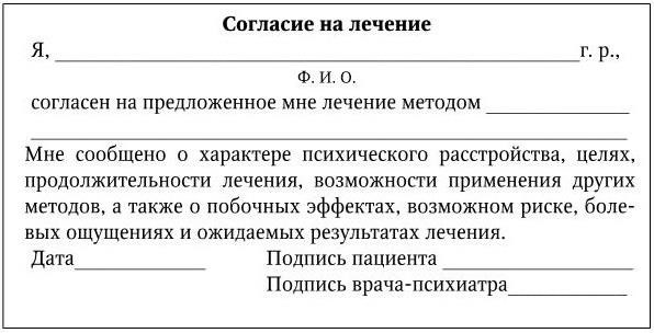 Согласие на тот или иной вид лечения психотропными и иными средствами дается пациентом в письменном виде.